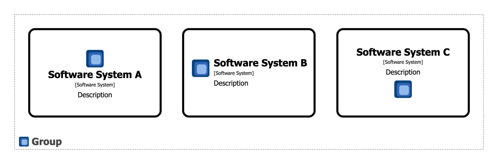 | System landscape | Enterprise (deprecated, use groups instead) | Software systems, people, custom elements |
